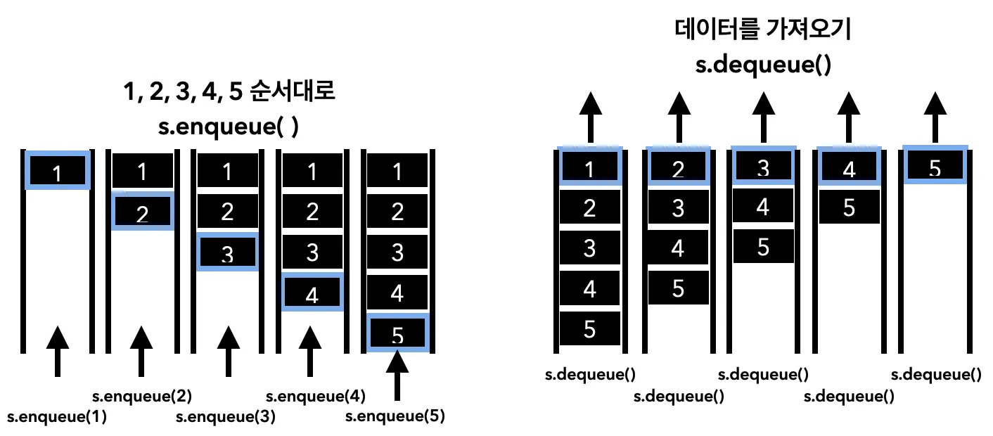 입, 출력 순서는 선입 선출 FIFO(First In First Out) 방식