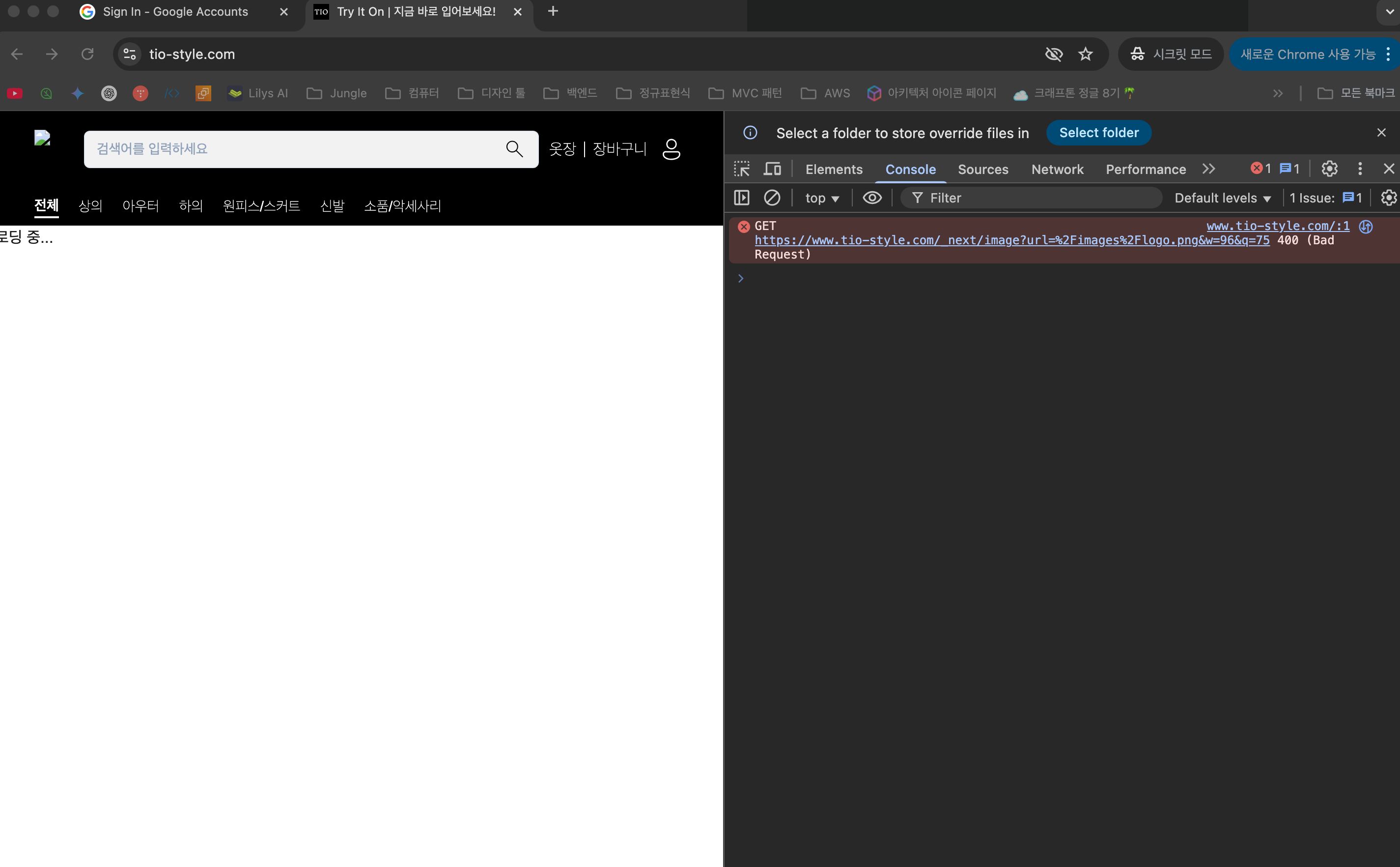 HTTPS 사이트(https://www.tio-style.com)에서 HTTP API 엔드포인트(http://tio-alb-173623777.ap-northeast-2.elb.amazonaws.com)로 요청을 보내려고 해서 브라우저가 차단하는 보안 정책이다.