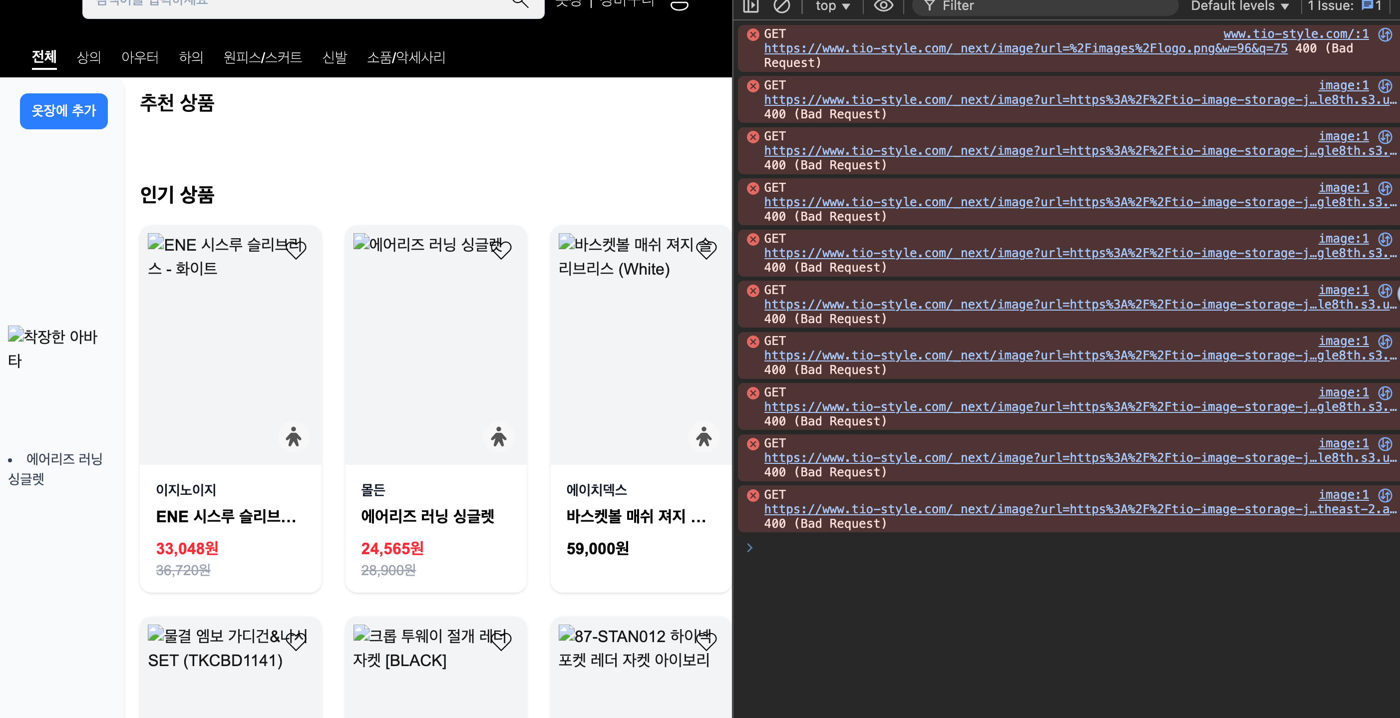 문제 발견! Next.js의 이미지 최적화 API인 /_next/image에서 400 에러가 나고 있었다.