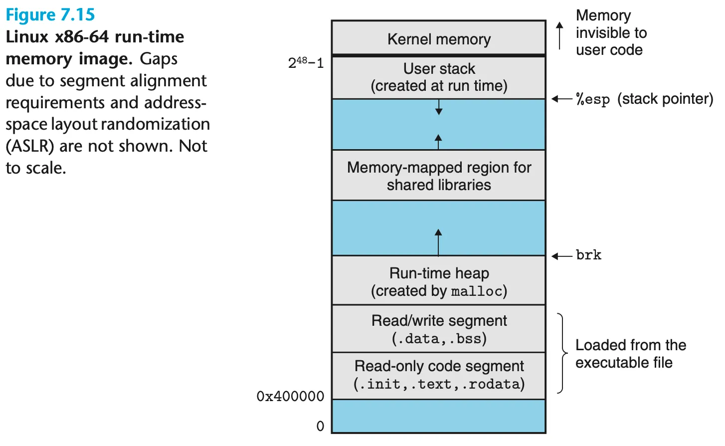 - x86-64 리눅스 메모리 배치도: