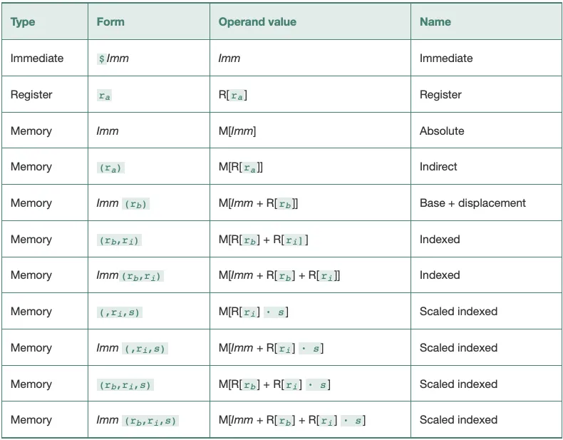 | 8(%rax,%rcx,4) | %rax + %rcx * 4 + 8 |